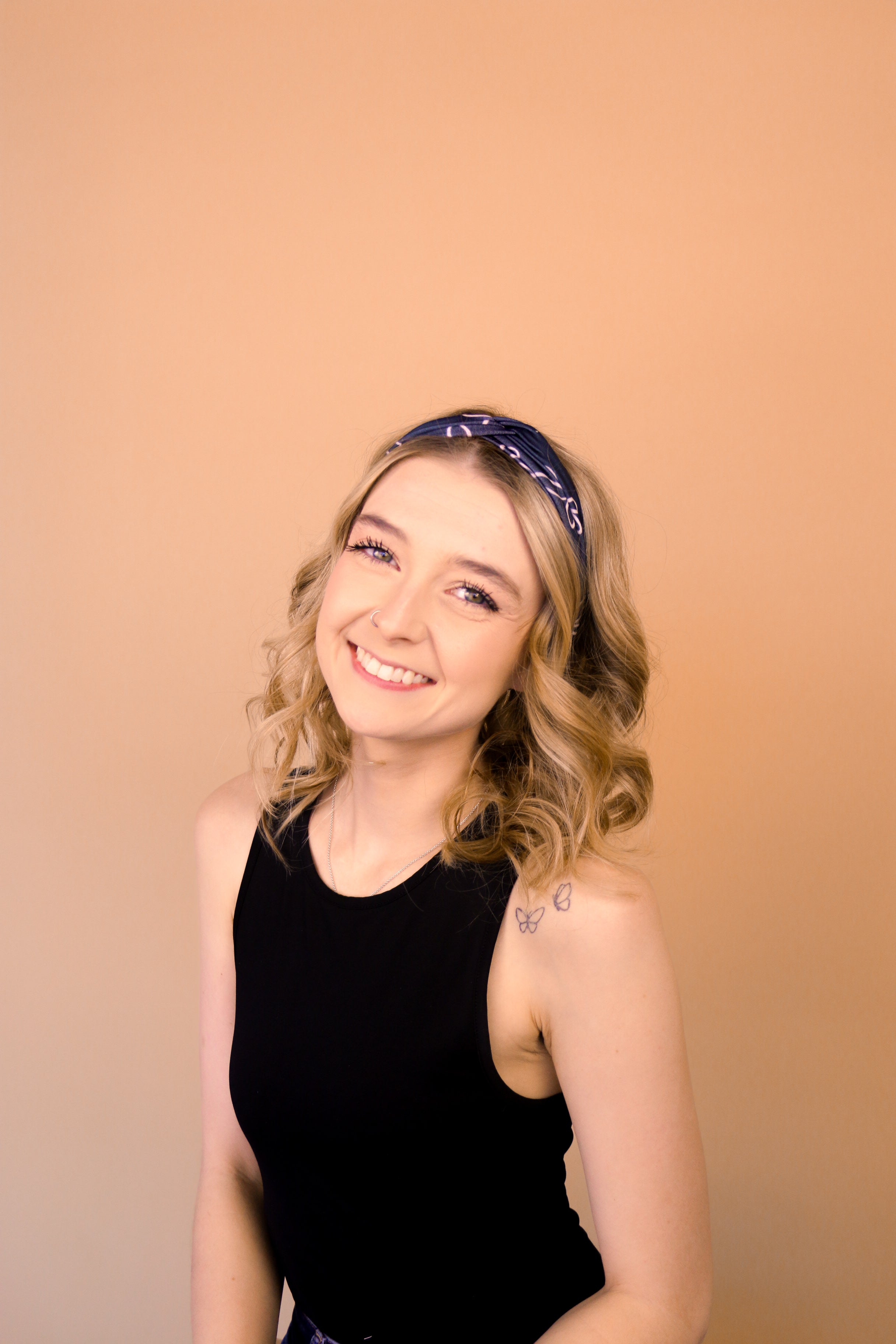 Our headbands can be worn multiple ways! You can place the knot in the middle, to the side, or around to the back so the widest part of the headband is visible. You can wear the headband in front of your hairline, or with some hair pieces framing your face. The style possibilities are endless.