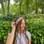 Our headbands can be worn multiple ways! You can place the knot in the middle, to the side, or around to the back so the widest part of the headband is visible. You can wear the headband in front of your hairline, or with some hair pieces framing your face. The style possibilities are endless.