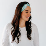 Our headbands can be worn multiple ways! You can place the knot in the middle, to the side, or around to the back so the widest part of the headband is visible. You can wear the headband in front of your hairline, or with some hair pieces framing your face. The style possibilities are endless.