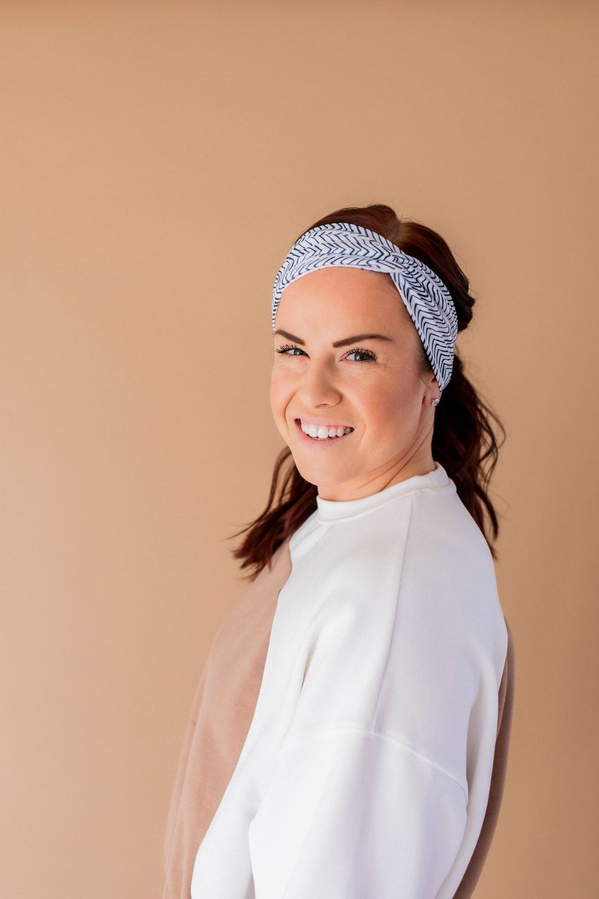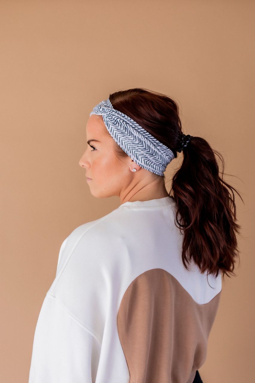 Our headbands can be worn multiple ways! You can place the knot in the middle, to the side, or around to the back so the widest part of the headband is visible. You can wear the headband in front of your hairline, or with some hair pieces framing your face. The style possibilities are endless.