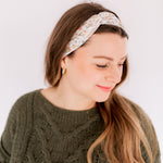 Our headbands can be worn multiple ways! You can place the knot in the middle, to the side, or around to the back so the widest part of the headband is visible. You can wear the headband in front of your hairline, or with some hair pieces framing your face. The style possibilities are endless.