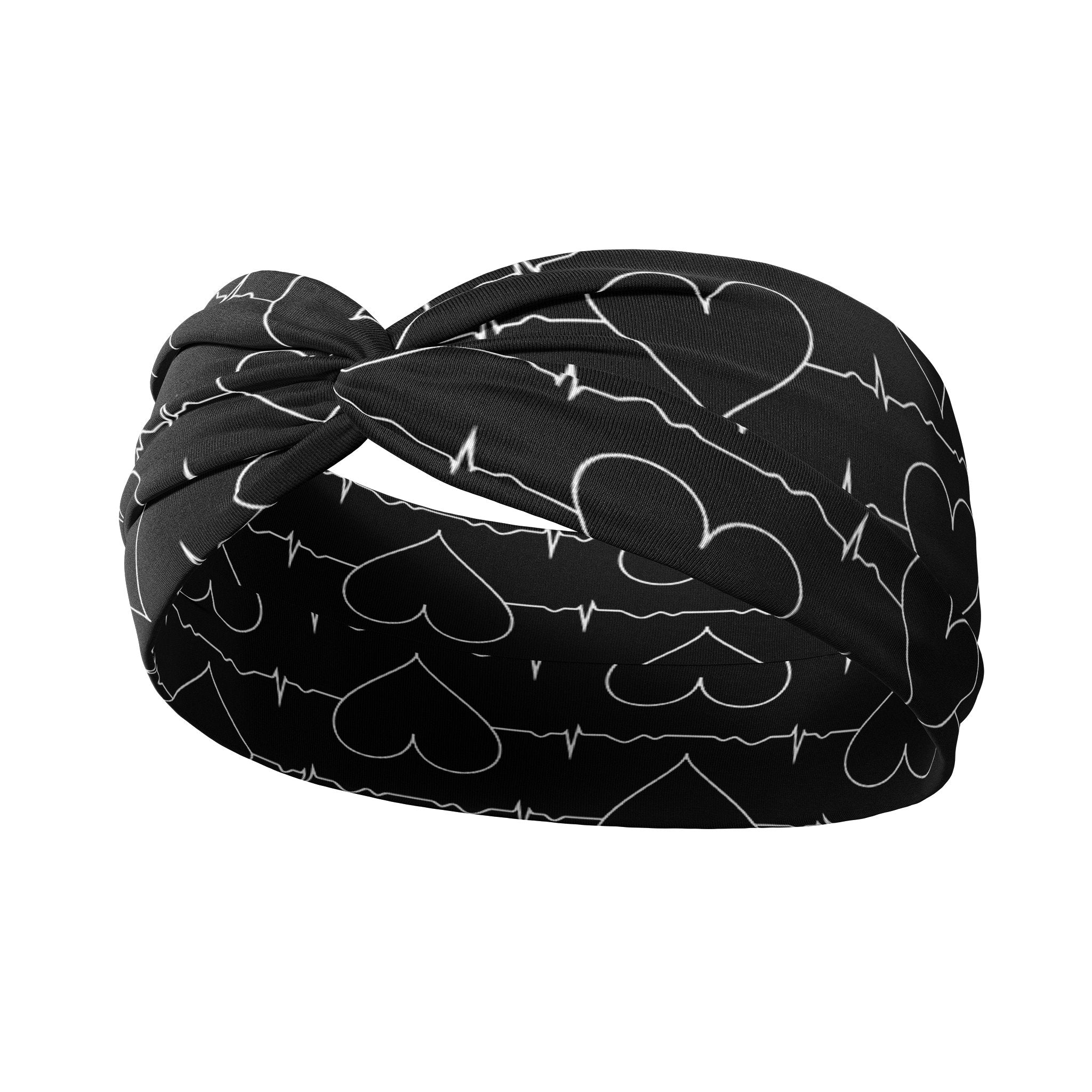 Adult women's black headband with white heart and EKG line print