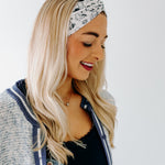 Our headbands can be worn multiple ways! You can place the knot in the middle, to the side, or around to the back so the widest part of the headband is visible. You can wear the headband in front of your hairline, or with some hair pieces framing your face. The style possibilities are endless.