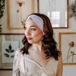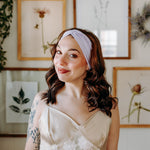 Our headbands can be worn multiple ways! You can place the knot in the middle, to the side, or around to the back so the widest part of the headband is visible. You can wear the headband in front of your hairline, or with some hair pieces framing your face. The style possibilities are endless.